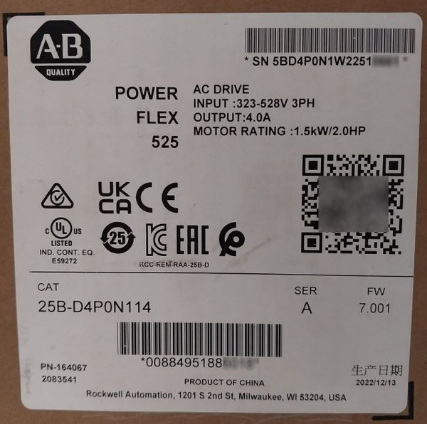 New Sealed Allen-bradley 25B-d4P0N114 Ser A Powerflex 525 1.5Kw/2.0Hp Ac Drive
