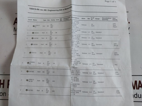 Desc: Kit, Repair, Valve, Spm, Normally