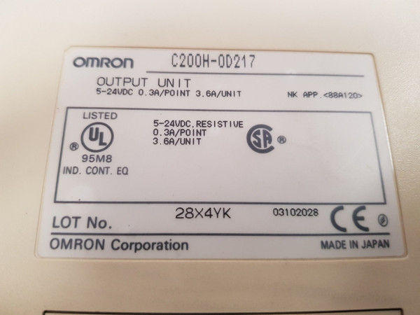 Omron c200h-0d217 output unit 5-24vdc 0.3a/pointomron corporationc200h-od217/ c200h-0d217output unit5-24vdc 0 .3a/point 3. 6a/unit031020280d217 ch/od217 chmade in japanweight: 250 gm