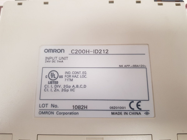 Omron c200h-id212 input unit 24v dc 7maomron corporationid212 chc200h-id212input unit24v dc 7macl. i, div. 2gp a,b,c,dcl. i, zn. 2gp iicmade in chinaweight: 165 gm