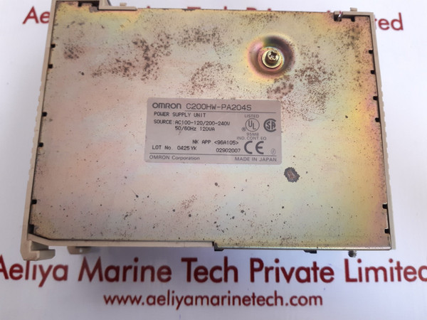 Omron c200hw-pa204s power supply unitomron corporation pa204sc200hw-pa204spower supply unitsource:ac100-120/200-240v 50/60hz 120vank app. 96a10502902007ac100-120/200-240v inputdc24v 0.8a outputmade in japanweight:410 gm