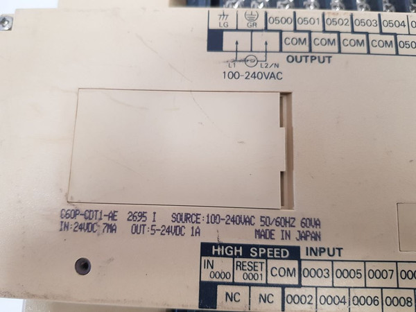 Omron C60P-cdt1-ae Sysmac C60P Programmable Controller 100-240Vac 50/60Hzomronsysmac c60pprogrammable controllerc60p-cdt1-ae2695 i source: 100-240vac 50/60hz 60vain: 24vdc 7maout: 5-24vdc 1a0.3amade in japanweight: 2.150 kg