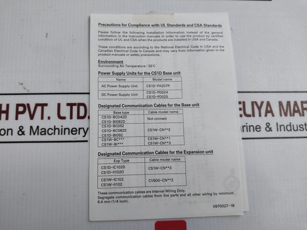 Omron Cs1D D-sub Backshell Set Ver. 1.3 0676222-5A 2195264-2AOmron CorporationSysmacCs SeriesModel: Cs1DVer.1.3Surrounding Air Temperature: 55˚C0676222-5A2195264-2A1125492-0 A4455462-8C0970027-1BWeight: 50 Gm