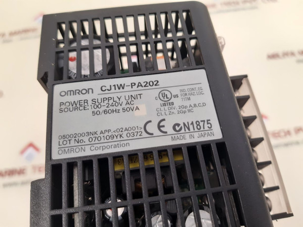 Omron pa202,cj1m cpu22,id211,od212 module rackomron corporationcj1w-pa202pa202power supply unit source: 100-240v ac 50/60hz 50va05002003nk app 02a001cl.i,div.2 gp a,b,c,dcl.i,zn.2 gp iicsysmac cj1m cpu22programmable controller id211dc24v 7maod212dc24v 0.5a0633od507-18pmade in japanweight : 920 gm