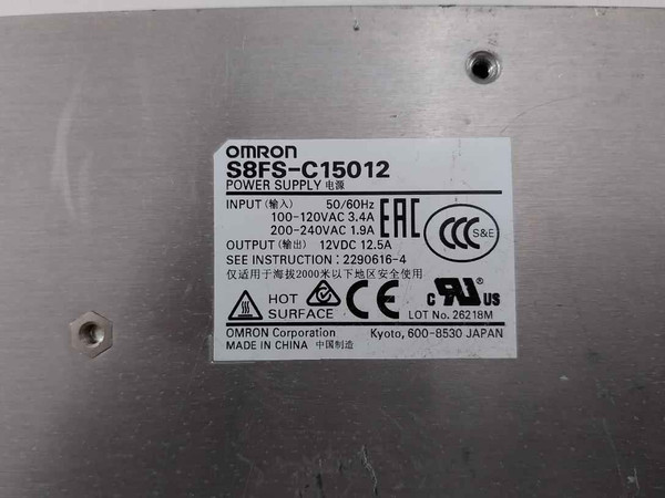 Omron S8Fs-c15012 Power Supply 50/60Hz Output 12Vdc 12.5A