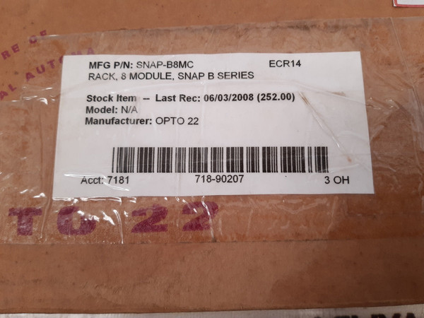 Opto 22 snapb8mc ecr14 8slot module rackopto 22 006568brain module insulator snapb8mcmfg p/n: snap-b8mc ecr14rack,8 module,snap b series manufacturer : opto 22acct: 7181 718-90207 3 oh weight: 410 gm