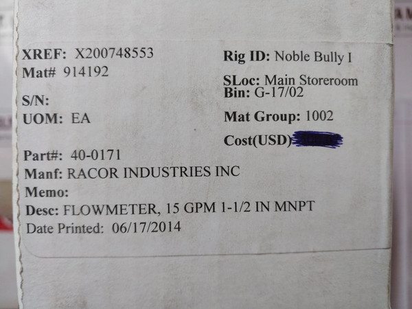 Parker 40-0171 Flowmeter 15 Gpm/56.25 Lpm, 1.5