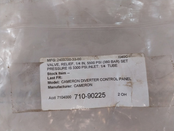 Parker 4A-lpra-epr-3,300-sslh3690 Diverter Control Panel Relief Valve