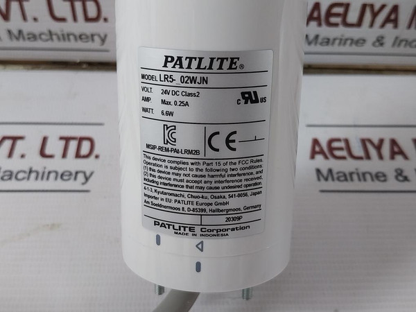 Patlite Lr5-102Wjbw-r Direct Mount Signal Tower 24V Dc 0.25A 6.6W