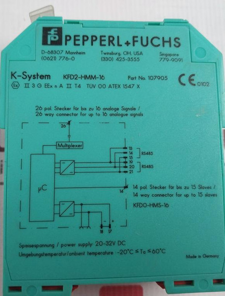 Pepperl+Fuchs Kfd2-hmm-16 Hart Mux Primary Module 107905 20-32Vdc