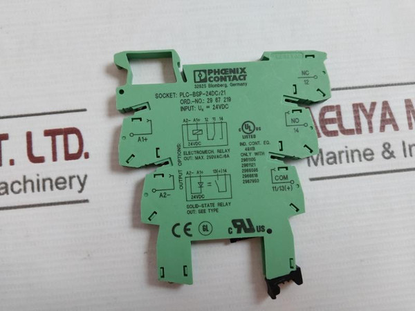 Phoenix Contact Plc-bsp-24Dc/21 Max.250Vac/6A Relay Base Plc Terminal BlockPhoenix Contact Socket: Plc-bsp-24Dc/21Ord.-no: 29 67 219Input: Un=24VdcElectromech.RelayOut: Max.250Vac/6ASolid-state Relay29611052961121296659529666182967950GermanyWeight: 50 Gm