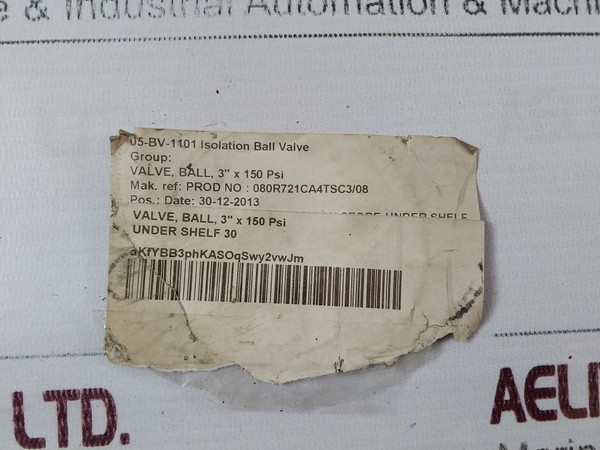 Valve, Ball, 3” X 150 Psi
