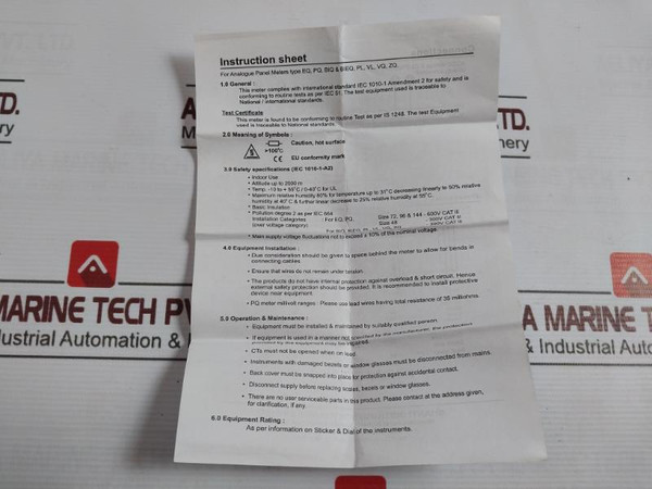 Rishabh Eq 96 Ammeter P1030295Ris 5A 850V Peak Sacc27077001 (W/O Dial)