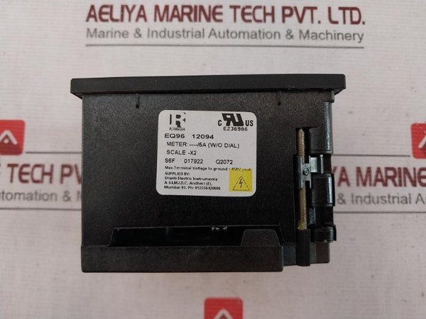 Rishabh Eq96 Analog Meter Voltage Without Dial 0-400/800A 400/5ARishabh Instruments Pvt.Ltd.Shanti Electric InstrumentsEq960-400/800A400/5AMeter: -5/A (W/O Dial)Scale: -x212094E236986S6F 017922 Q2072Max.Terminal Voltage To Ground=850V Peak400/5A Without DialAltitude Up To 2000 MTemp.: -10 To +55°C/0-40°C For UlMaximum Relative Humidity 80% For Temperature Up To 31°C Decreasing Linearly To 50% Relative Humidity At 40°C & Further Linear Decrease To 25% Relative Humidity At 55°CPollution Degree 2 As Per Iec 664600V Cat IiiSl0016972Sacc27077359Ammeter (0-400A) AcWeight: 270 Gm