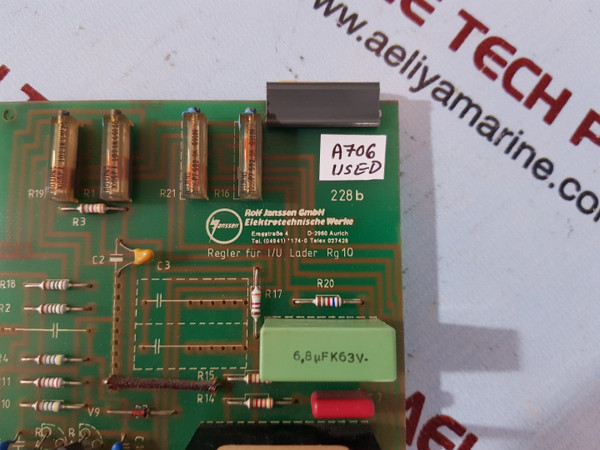 The Rolf Janssen RG10 Regler Für I/U Lader Card is a dependable control module designed for efficient and stable battery charging operations. Manufactured by Rolf Janssen GmbH Elektrotechnische Werke, this module helps maintain accurate charging performance in marine and industrial systems. Built for reliability and consistent output, it ensures smooth operation of I/U charging applications.