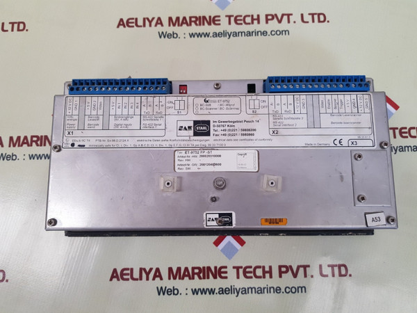Sae stahl et-9752 fp-st anti collision system m-iiisae stahlbentec drilling & oilfield systemsanti collision system m - iiiperro negro 3saipem+12vdc +5veex ib iic t4ptb. nr. ex-98. d. 2124 xintrinsically safe for cl. i, div-1, gp a,b,c,d; cl, ii, div. 1.gp e,f,g;cl, iii t4 typ: et-9752 fp - startikel- nr.-hw. 200020310000artikel-nr.- sw.: 20012040060099 33 61 000187306099235made in germanyweight: 1.670 kg