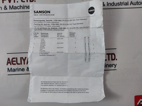 Packing Kit, Item No: 1120-1953, Dn 50 To Dn100, Type Standard,Ptfe Carbon, Spring Loaded