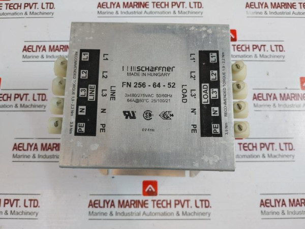 Schaffner Fn 256-64-52 Line Filter,64A, 480/275Vac
