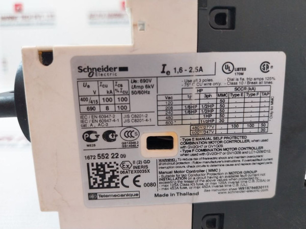 Schneider Electric Gv2-p07/1.6-2.5A Motor Circuit Breaker 6Kv