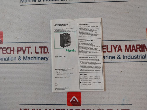 Schneider Electric Nsx 100F 190Amp Circuit Breaker/Switch-disconnector 50/60Hz