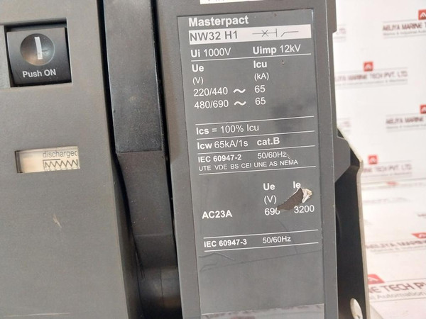 Schneider Electric Nw32 H1 Masterpact Micrologic 2.0A Circuit Breaker 1000V 12KvSchneider ElectricMerlin GerinMicrologic 2.0AMasterpactNw32 H1Ui: 1000VUimp: 12KvUe                Icu (V)               (Ka) 220/440~   65 480/690~   65Ics= 100% IcuIcw 65Ka/1S Cat.BIec 60947-2 50/60HzAc23A      Ue        Ie (V)       (A) 690   3200Iec 60947-3Gh800220AaNw 3P 25/40 H1 CbK11526 58756Gh800017AaK11525813709Tke0071133Mx-xf/Sht-shc380-480 Vac0831433664E161835E63335In: 3200AW1108592 25Made In IndiaWeight: 47.500 Kg