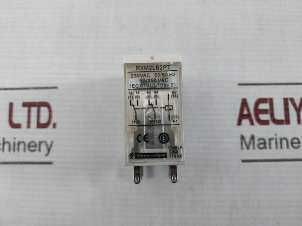 Schneider Electric Rxm2Lb2P7 Miniature Plug In Relay 230Vac 5A/250 VacSchneider ElectricTelemecaniqueRxm2Lb2P7230Vac 50/60Hz5A/250 VacIec 61810-1 (Iss.2)8A1144XChinaWeight: 50 Gm