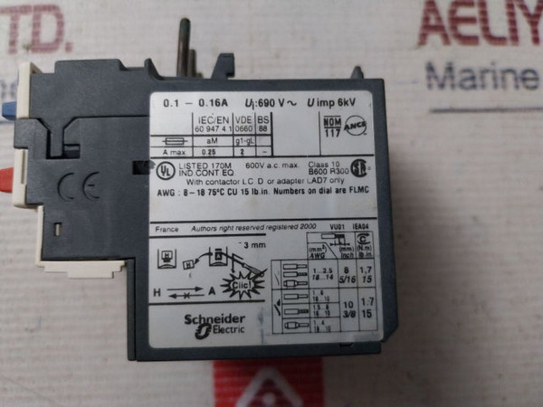Schneider Electric Telemecanique Tesys Lrd01 Overload Relay 0.1-0.16A 690V Ac