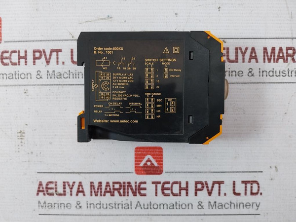Selec 800Xu Programmable Electronic Timer Relay 5A 250 Vac/24 VdcSelecOrder Code: 800XuB. No.: 10010-10Supply: A1, A220 V To 240 Vac12 V To 240 VdcAc: 50/60Hz,2 Va Max.Contact: 5A, 250 Vac/24 Vdc, ResistiveWeight: 110 Gm
