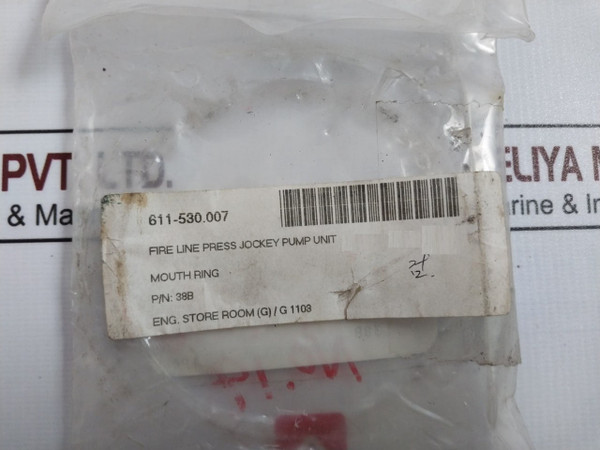 Shinko 38B Mouth Ring For Fire Line Pressurizing Jockey Pump UnitShinko Ind.Ltd.Name Of Pump Or Turbine:Fire Line Pressurizing Jockey Pump UnitName Of Part: Mouth RingPart No: 38B12474611-530.007Weight: 250 Gm