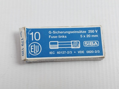 Siba Lot Of 17X Siba 179 120 Glass Fuse 250V Compare MSRP: $98.99 Lot Of 17X Siba 179 120 Glass Fuse 250VSibaFuse-linksType: 179 1204A 250V5X20 MmIec 60127-2/3Vde 0820-2/3Art.No.: 70 001 35Breaking Capacity L 35A Ac (Min. 10 X In)T (Trage Time-lag)Weight: 50 Gm Add to Cart Add to Cart Add to Wish List Add to My Wish List Create New Wish List