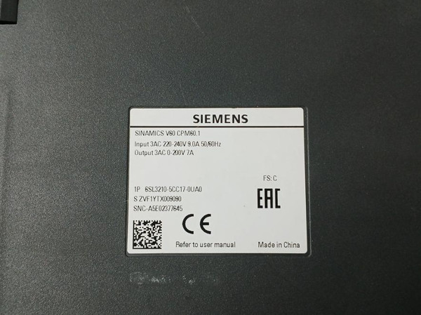 Siemens 1P 6Sl3210-5Cc17-0Ua0 Controlled Power Module Sinamics V60 Cpm60.1, 9.0A