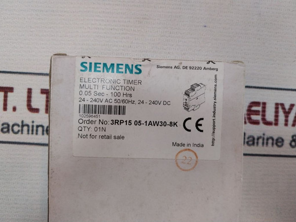 Siemens 3Rp1505-1Aw30 Electronic Time Relay 0.05 Sec - 100 Hrs