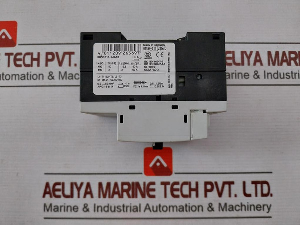 Siemens 3Rv1011-1Ja10 Circuit Breaker For Motor Protection 600V 10 Fla MaxSiemensSirius3Rv1011-1Ja103Rv1901-1D7-10A MaxClass 10130AG/050120Nq041216*E05**E03*Iec/En 60947-2Iec/En 60947-4-1 50/60HzCat.A/Ac-30,8…1,2 Nm7…10.3 Lb.InA003617Ii (2) G/D600V, 10 Fla MaxDial Is Fla Trip Amps 125%;Use 75°Cu Wire Only;Instr.Ord.No.: 3Zx1012-0Rv01-1Aa14 011209 263697Made In GermanyWeight: 280 Gm
