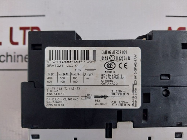 Siemens 3Rv1021-1Aa10 Motor Protection Circuit Breaker 21A