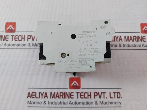 Siemens 3Vu1300-1Nl00 Circuit-breaker For Motor Protection 600Vac Max 6A 10ASiemens3Vu1300-1Nl008-13A11EVde 0660 Iec 60 947-2Iec 60 947-4-1I: 156A50/60Hz Cat.A Ac-3Uimp: 6KvP40006003S17125 Fla Max 600Vac MaxTrip Amps Are 125% Class 10ATorque 12 Lb.In/1.4 NmUse Cu Wire 75°C OnlyAux. Contact 1No+1Nc  B600 Q3003Vu9131-3Aa001S+1OIth: 6A 10AIe/Ac-15 1,5A 415V~Iec 60947-5-1For Use With Type 3Vu13/3Vu16G/000314117/117Made In GermanyWeight: 350 Gm