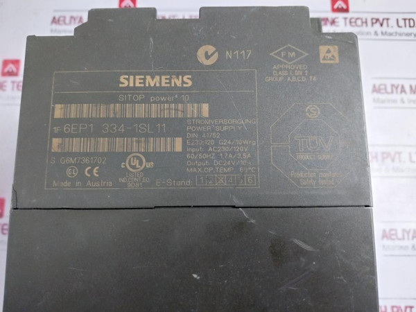 Siemens 6Ep1 334-1Sl11 Sitop Power 10 Power Supply Unit Ac230/120V 60/50Hz 1.7A/3.5A