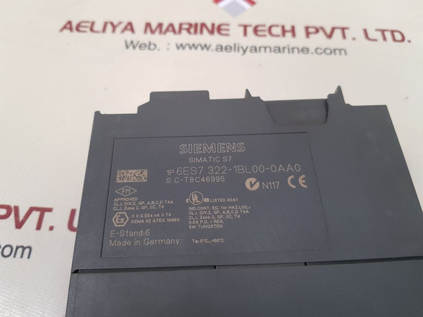 Siemens 6es7 322-1bl00-0aa0 output modulesiemenssm322do 32xdc24v/0.5a322-1bl00-0aa0simatic s71p 6es7 322-1bl00-0aa0s ct8c46995cl.i, div.2, gp. a,b,c,d t4acl.i, zone 2, gp. iic. t40.5a p.d. / res.5w tungstenii 3 g eex na ii t4kema 02 atex 1096xe-stand: 6ta: 0°c...+60°cmade in germanyweight: 340 gm