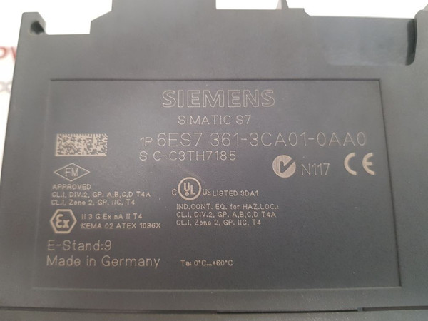 Siemens 6es7 361-3ca01-0aa0 interface modulesiemens simatic s7s7-300361-3ca01-0aa01p 6es7 361-3ca01-0aa0s c-c3th7185cl.1,div.2,gp.a,b,c,d t4acl.1,zone 2,gp iic,t4kema 02 atex 1096xta: 0'c...+60'cim361 im-rdc5vmade in germanyweight : 375 gm