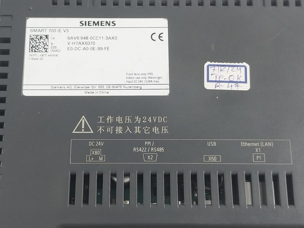 Siemens Simatic 6Av6 648-0Cc11-3Ax0 Operator Interface Touch Panel 24Vdc 34A