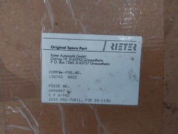 Siemens Simatic S5 Cpu 942B 6Es5 942-7Ub11 Central Processing Unit
