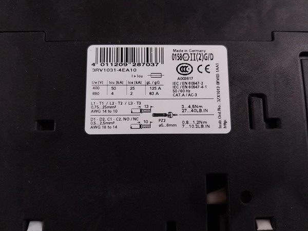 Siemens Sirius 3Rv1031-4Ea10 Motor Protection Circuit Breaker Class 10 50/60Hz