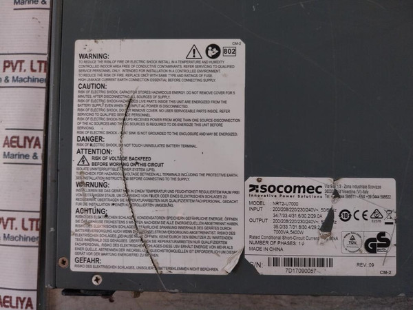 Socomec Nrt2-u7000 Output 5400W Single Phase Power Solution Rev: 09