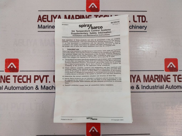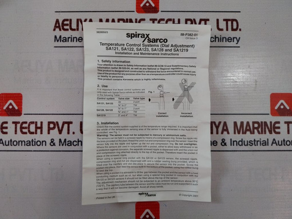 Spirax Sarco Sa 128 Dial Adjustment Temperature Control Systems