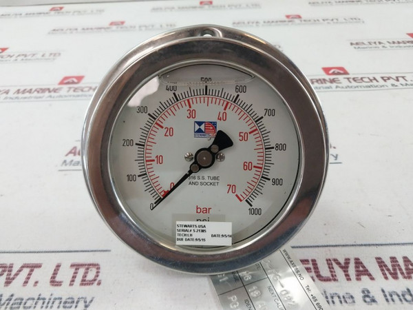 Stewarts 316 S.S. Tube And Socket Pressure Gauge 0-70 Bar