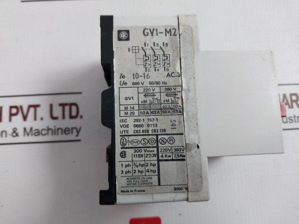 Telemecanique Gv1-m20 Din Rail Mount Circuit Breaker 300V Max