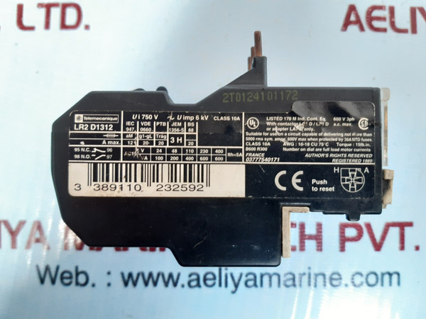 Telemecanique Lr2 D1312 Overload Relay 600V 3Ph