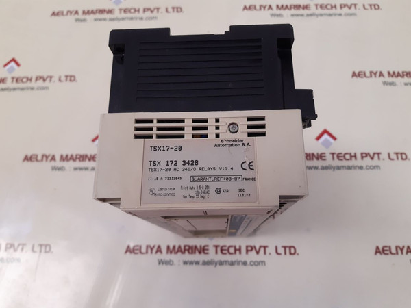 Telemecanique/Schneider tsx17-20 controller unit tsx 172 3428schneider automation s.a.telemecaniquetsx 171a4110v 240 v 50/60hztsx17-20tsx1723428tsx17-20 ac 34i/o relays v:1.4ii:15 a 71312845pilot duty 0.5/0.25a120/240vacmax temp 55 deg. ciec 1131-24p 1263073011511971312845franceweight: 1.570 kg