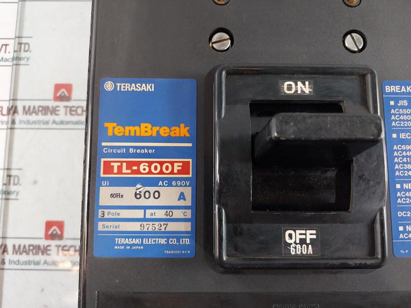 Terasaki Electric Tl-600F Tembreak Circuit Breaker 3-pole 600A Ac690V 50-60Hz