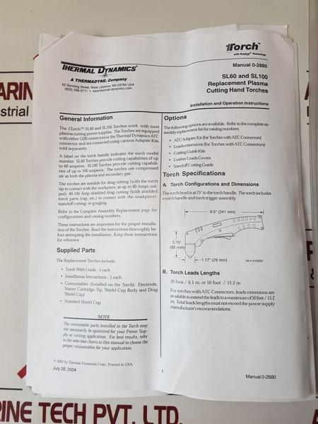 Thermal Dynamics 9-8237 Torch Shield Cup Kit 7-5202 Sl 100, Rpt (O2B), 7-3446
