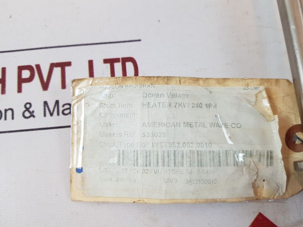 Stock Item: Heater 7Kw 240 1Ph